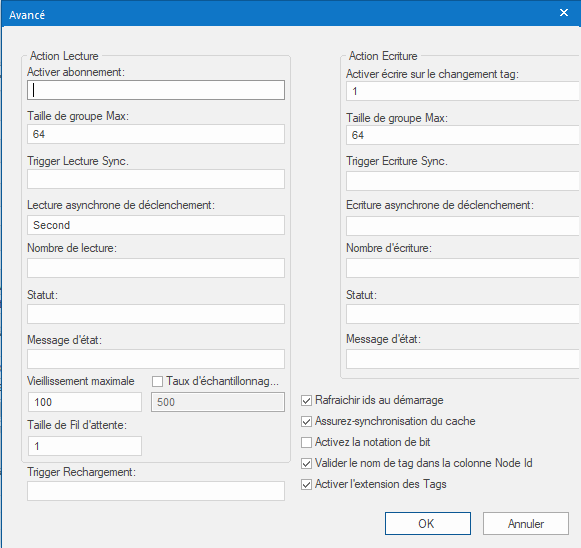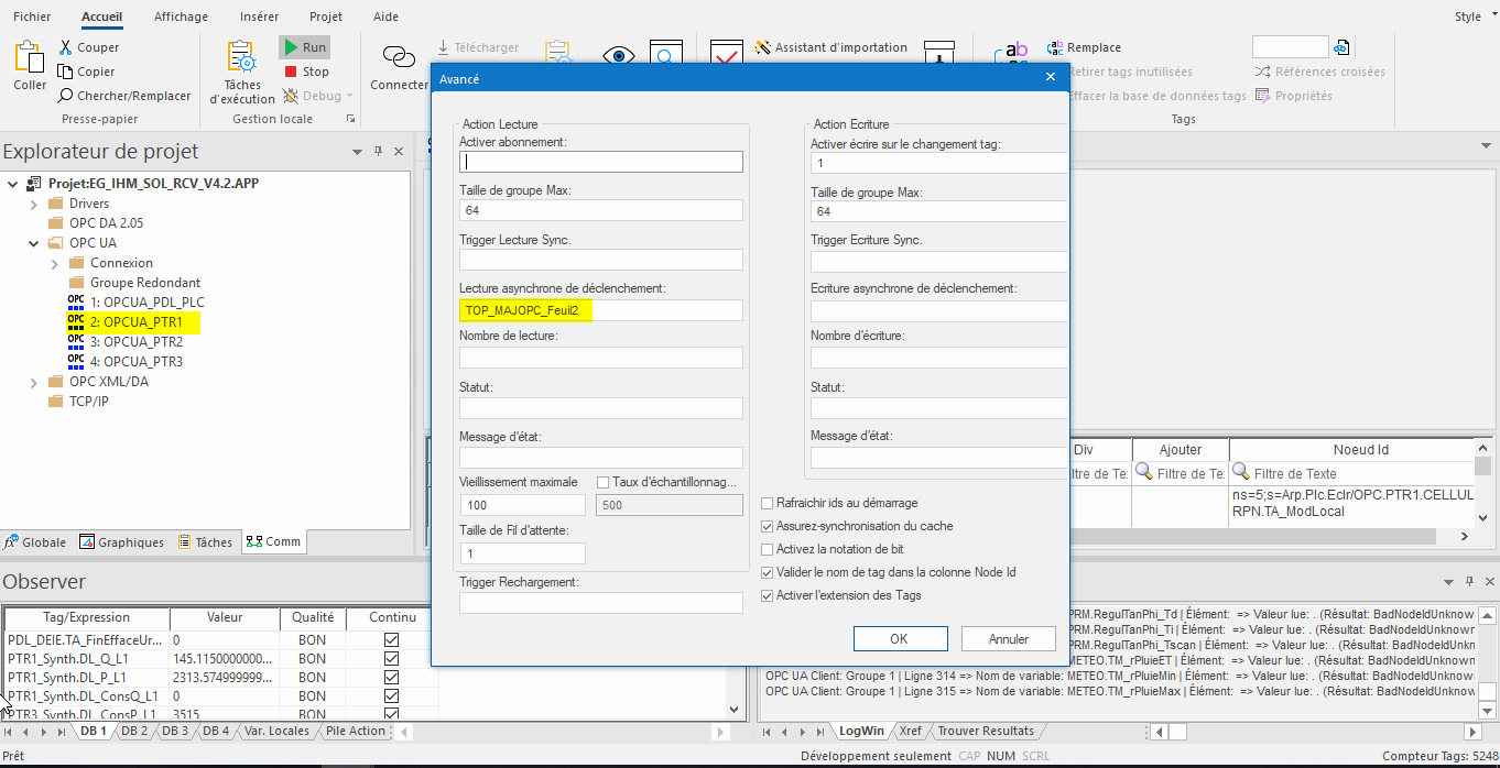 Finalement, aller dans l'onglet avancé de la communication avec chaque PTRs et rentrer le tag TOP_MAJOPC_Feuil correspondant au numéro du PTR :