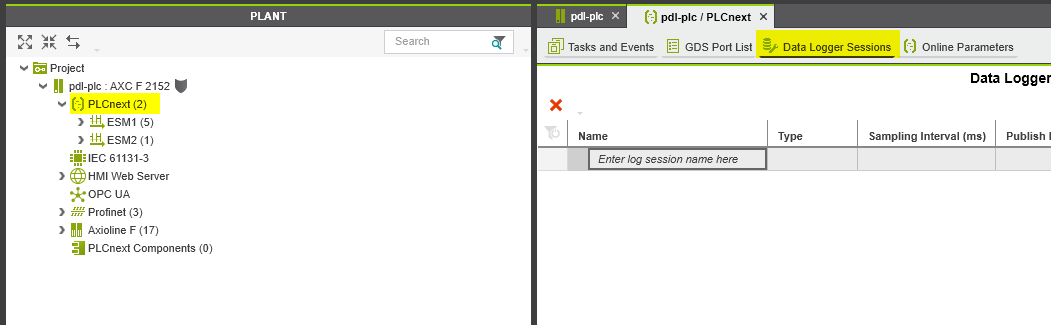 Il faut vérifier que l'onglet Data Logger Sessions est bien vide :