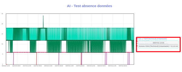 - Vérifier que les dernières données importées datent de moins de 4 heures en passant la souris sur les derniers points (un tooltip s'ouvre avec la valeur et la date) :