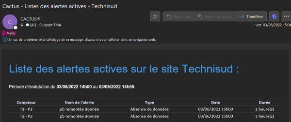 Lorsque nous recevons un mail d'alerte Cactus support de ce type là :
