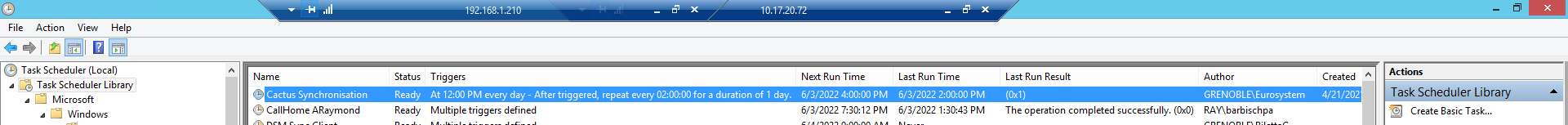 L'objectif de cette page wiki est de décrire la marche à suivre pour relancer une tâche planifiée sur Araymond en cas de mail d'alertes cactus.