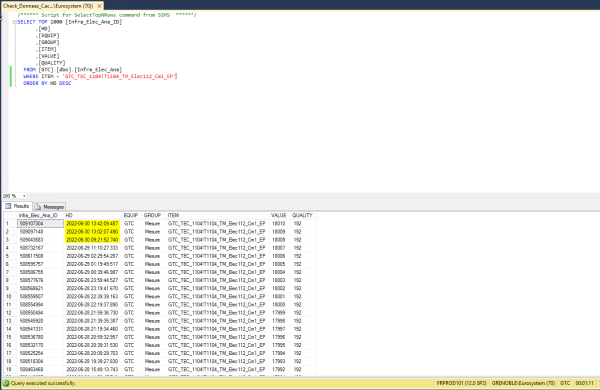 Si la requête renvoie des données à la date du jour, alors on peut continuer la procédure :