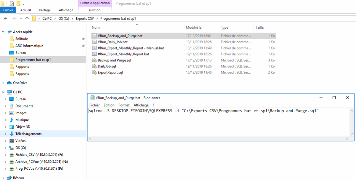 Le fichier #Run_Backup_and_Purge.bat a pour unique but de lancer la requête SQL Backup and Purge.sql.