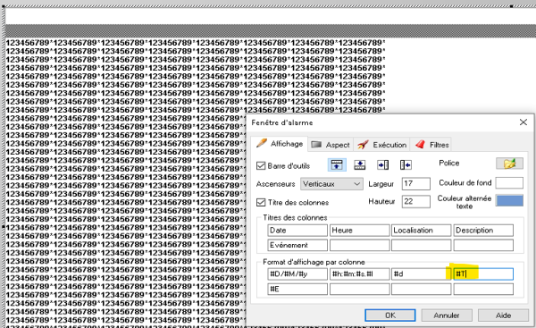 - Double cliquer sur la zone d'affichage des alarmes