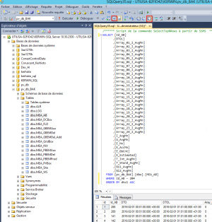 - Ouvrer le ficher contenant les valeurs qui vous intéressent. (Par exemple dbo.MEA_AB pour les mesures d'intensité, de tension et de puissance)