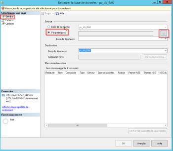 - Clic droit sur pv_db_BAK, TâchesRestaurerBase de données… - Dans l'onglet :