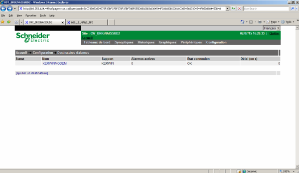Cliquez sur “Configuration”, puis sur “Destinataires d'alarmes”.