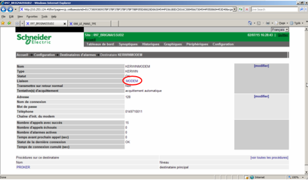 Quand on change la liaison d'un site en passant d'une liaison RTC en liaison IP, il faut mettre la liaison RTC en liaison secours. Pour cela, cliquez sur la fonction “Liaison”.