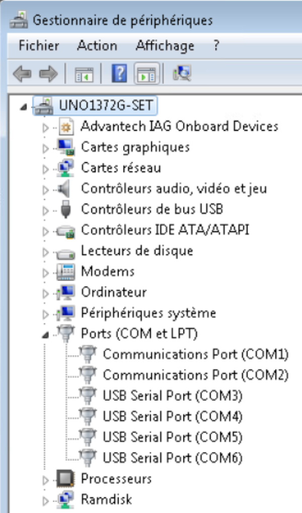 Double cliquer sur les ports “USB Serial Pot (COMX)” puis aller dans l'onglet “paramètre du port” puis cliquer sur “avancé” afin d'obtenir les paramètres du port en question.
