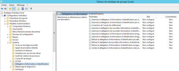Une fois la page ouverte, cliquer sur modèles d'administration puis système puis Délégation d'informations d'identification.