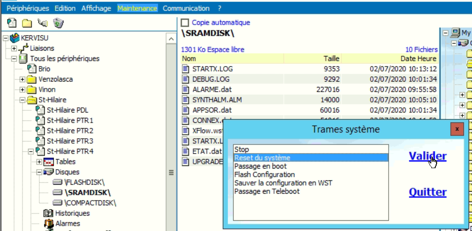 La copie du fichier est terminer, il est maintenant nécessaire de faire un RESET de l'IRIO