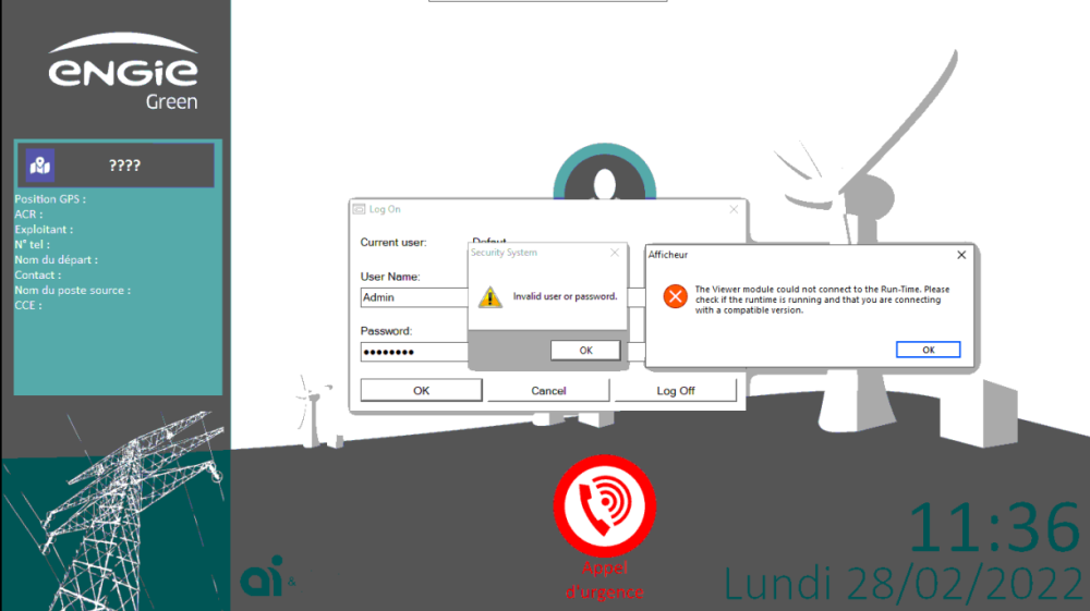 Le problème de Runtime pour la supervision AVEVA est connu et nous attendons un retour de l'équipe projet qui gère ça. Voici un screen du défaut qui a eu lieu sur Haguenets.