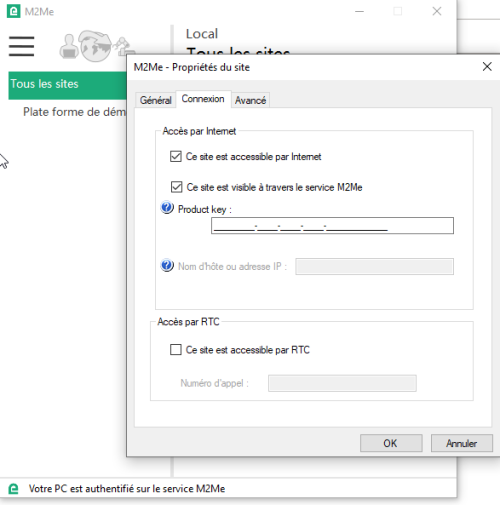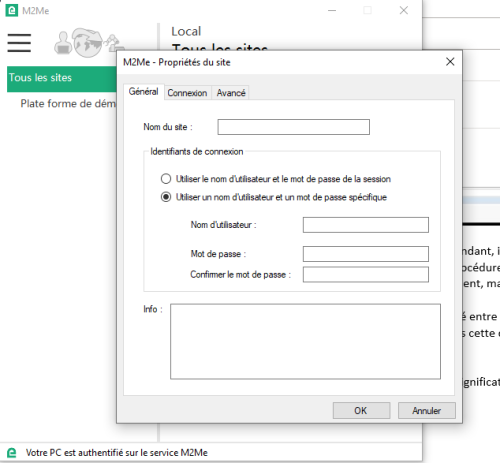 Ensuite, vous pouvez vous connecter au site désiré, qui apparaît dorénavant dans le menu M2Me.