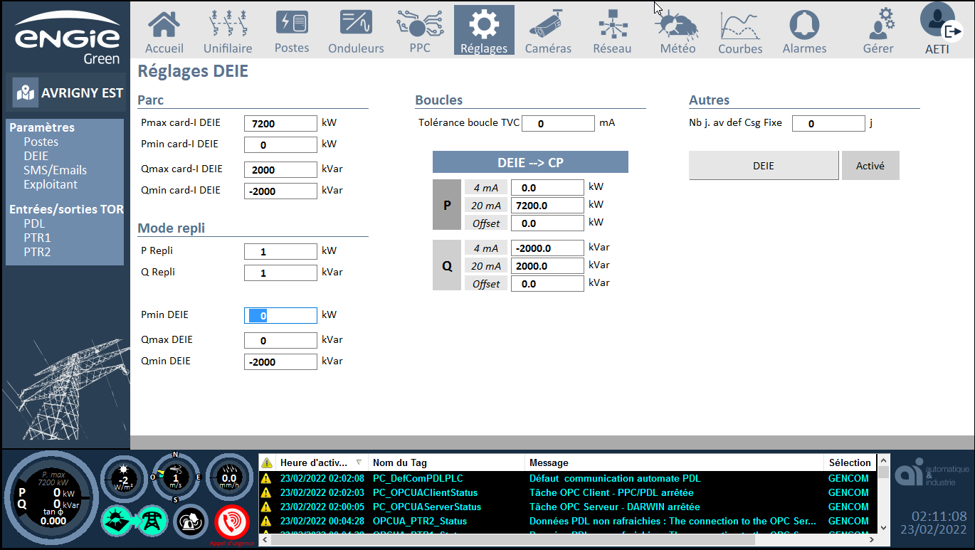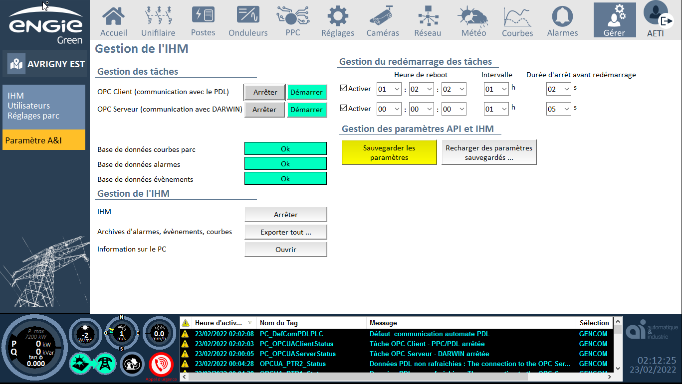 Attention, avant tout redémarrage, qu'il soit chaud, frois on reset elec, il faut bien penser à faire une capture d'écran de la supervision (voir paragraphe suivant).