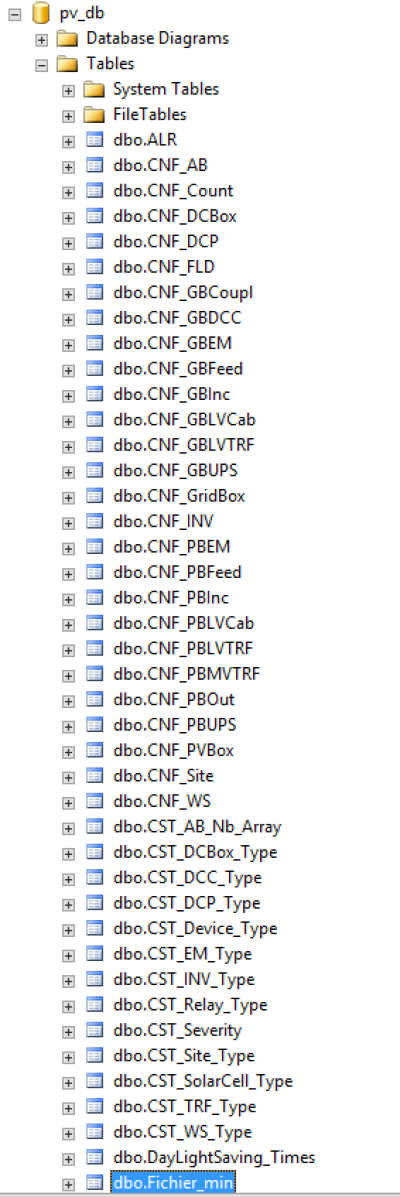 Pour se faire, se connecter a la base de données, puis regarder dans Databases→pv_db→Tables et chercher dbo.Fichier_min