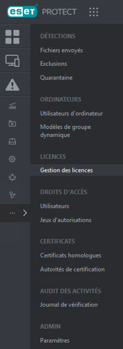 Depuis les “…” sur la gauche de la page web, accéder à la page “gestion de licence”.