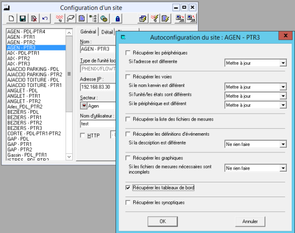 Si celles-ci sont vide, il faut faire une auto-conf en ne cochant que “Récupérer ls tableaux de bord”