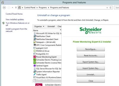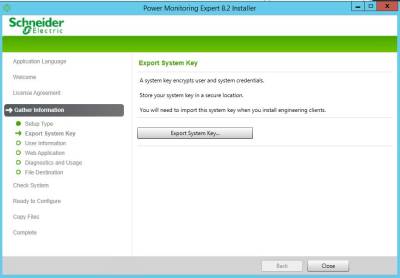 Faire un clic droit sur l’application Power Monitoring Expert puis Change. Une fois que la pop-up s’ouvre, cliquer sur « Export System Key… ».