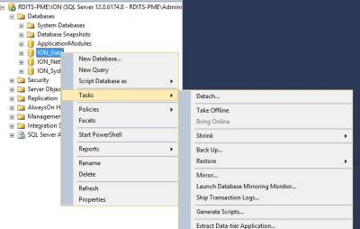 Placer ensuite la souris sur « Tasks » puis cliquer sur Back Up…