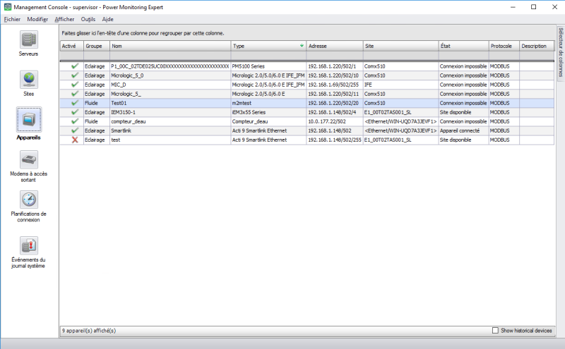 Les dispositifs OPC représentent les dispositifs physiques avec lesquels le système communique par l'intermédiaire d'une interface OPC.