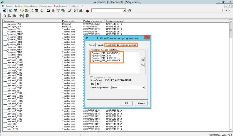 Sur SD Kerwin, des tâches séquenceurs sont mises en place pour exporter des fichiers de mesure. Ces fichiers sont ensuite envoyés sur les serveurs de SD.