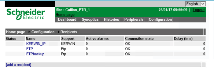 Le client de Callian a un accès FTP pour télécharger les données. Il se peut que son accès soit bloqué, pour le débloquer, il faut se connecter aux irios des 2 PDLs et des 3 PTRs.