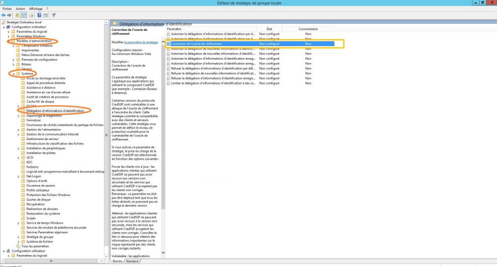 Effectuer ensuite un “Clique droit” sur Correction de l'oracle de chiffrement et choisir “Modifier”.