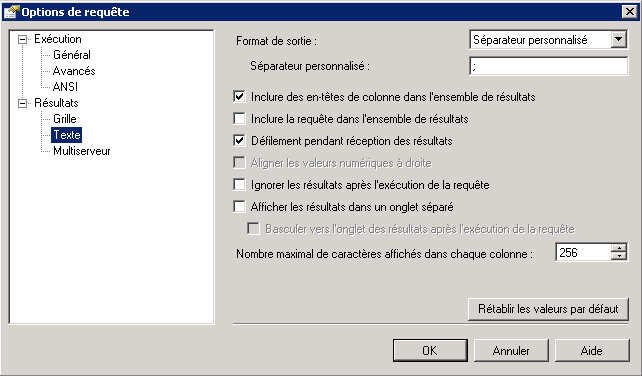 - Changer également le format du résultat: Requête\ Résultats dans\ Résultats dans un fichier