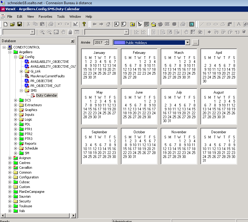 - lancer ViewX et sur le site de votre choix déployez l'arborescence Config→SMS→Duty Calendar