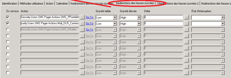 Il ne faut pas toucher à l'onglet redirections des heures non ouvrées. Cette redirection est traitée en interne chez Schneider Electric.