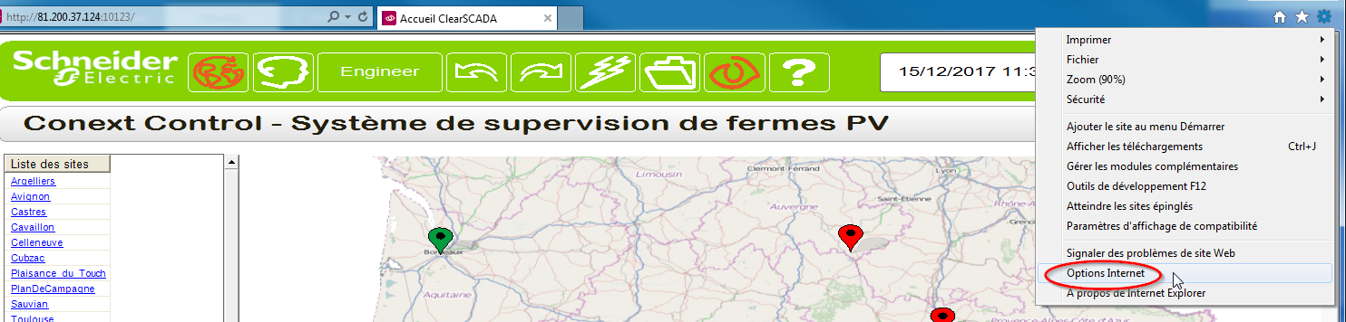 Dans certains cas, il arrive que votre navigateur IE (ou celui d'un client) ne permette pas l'accès à Conext Control et affiche un message du style : ViewXCtrl n'est pas compatible avec ce navigateur Web. Vous devez utiliser Internet Explorer.
