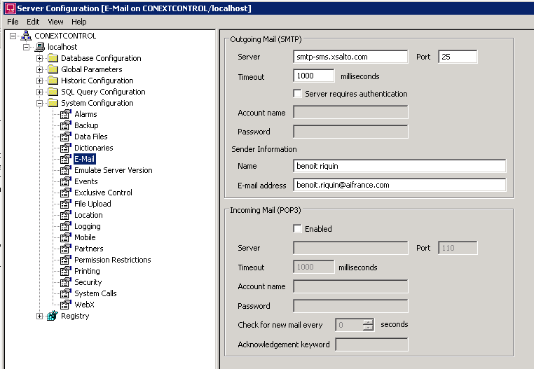 Aller dans System Configuration puis dans EMail.