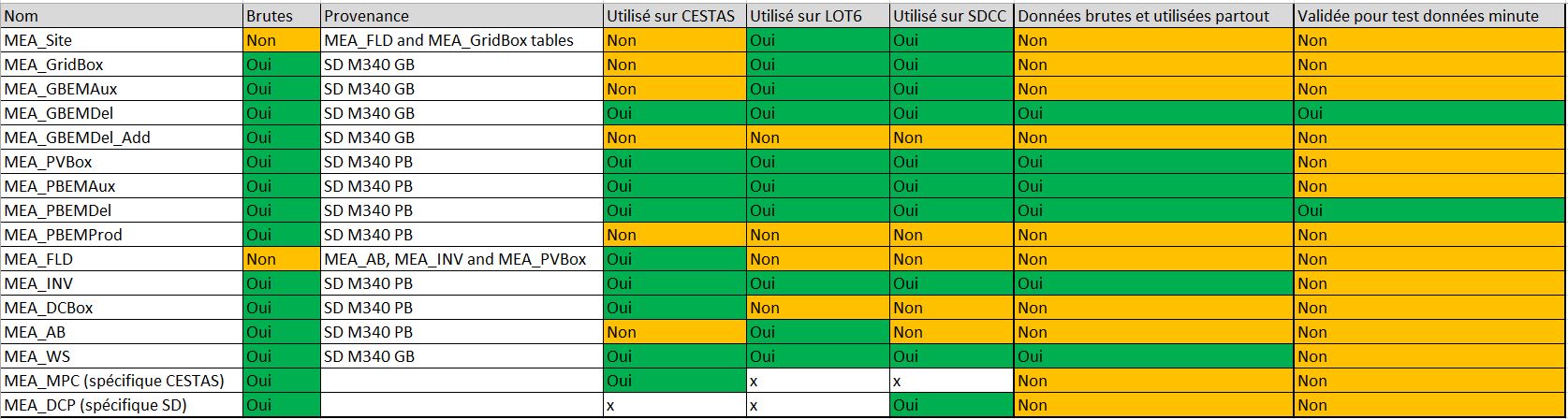 Ce Wiki présente les tables de la base SQL PVDB utilisées sur les différents CC de la TMA PV, si ces tables sont issues de données brutes ou données consolidées, et d'où proviennent les données (de quelle table ou de quel automate).
