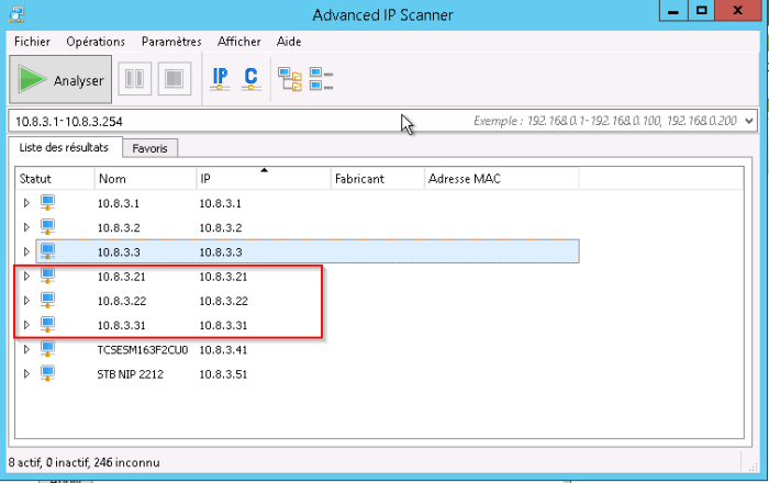 1ère étape: Réaliser des Scan d'adresse IP entre différents PTRs (ou sites) pour s'assurer de l'adresse IP de la passerelle.