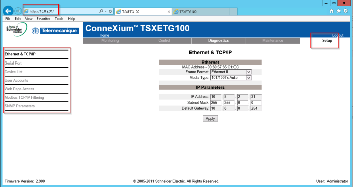 Suite à un problème remonté sur Solaire Direct Conext Control, Beconnais-PTR2, voici une procédure d'aide à la configuration des passerelles de communication TSX-ETG-100.