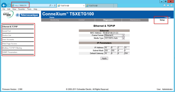 Suite à un problème remonté sur Solaire Direct Conext Control, Beconnais-PTR2, voici une procédure d'aide à la configuration des passerelles de communication TSX-ETG-100.