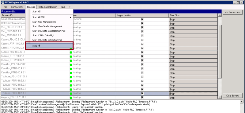 Ne pas oublier de relancer tous les processus du PvdbEngine une fois la manipulation effectuée!