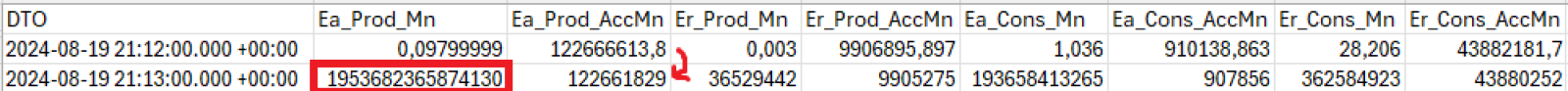Comme indiqué ci-dessus : il faut vérifier la table dbo.MEA_GBEMDel, il doit y avoir l'énergie accumulée minute M qui est inférieure à l'énergie accumulée minute M-1.
